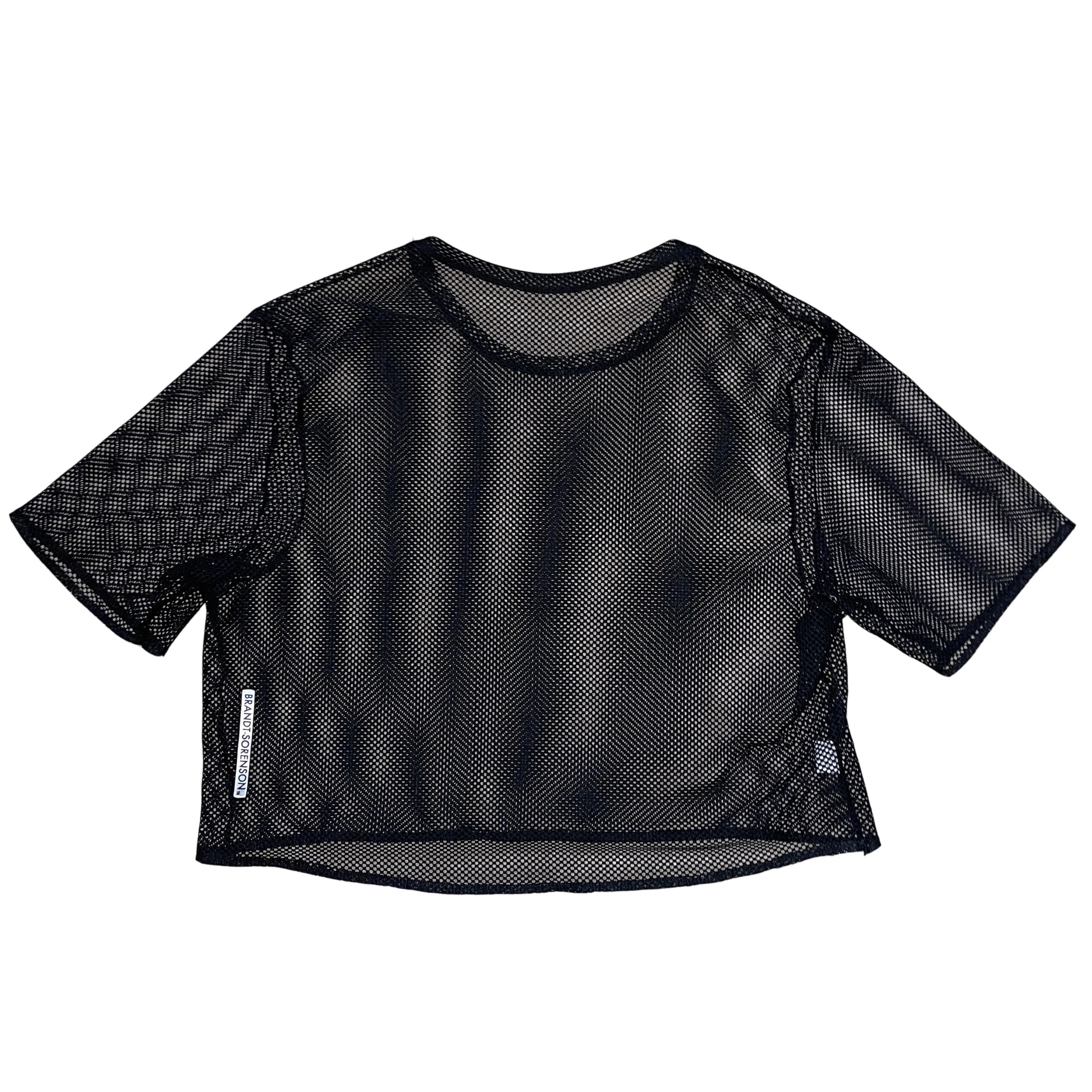Oversized Sport Mesh Crop top for cycling and running. Grid mesh with single needle stitched hems and sewn rear logo. Slight 4-way stretch. Classic 3/4 length sport top.